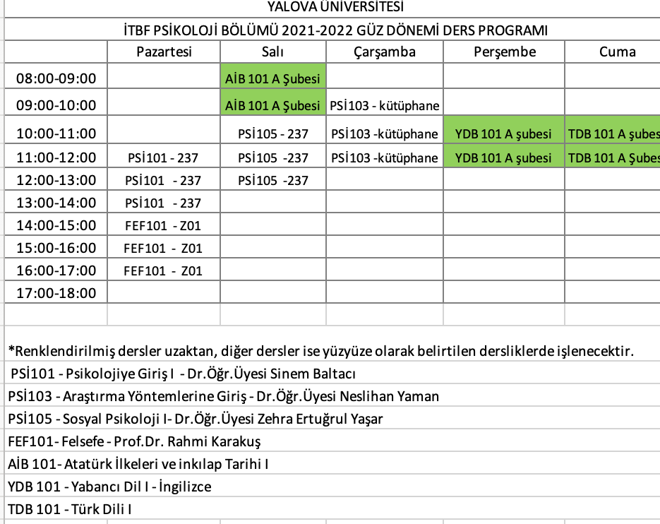 The course schedule for Fall 2021 is attached.