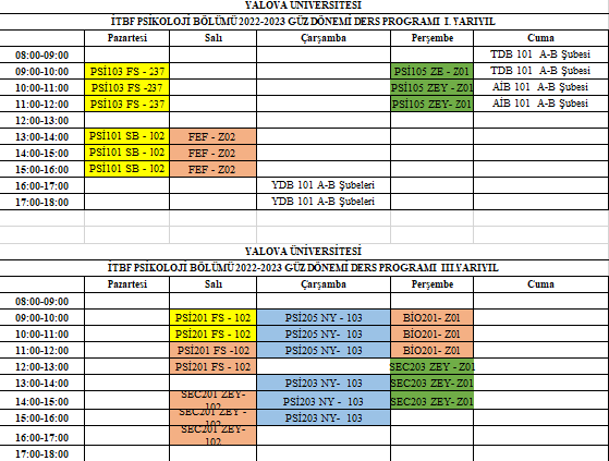 The course schedules for the Fall Semester of the 2022-2023 academic year are as follows. Courses highlighted in color will be held in person.
