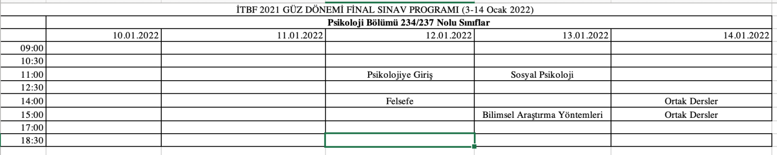 The schedule for the Fall 2021 Final Examinations of the Department of Psychology is as follows.