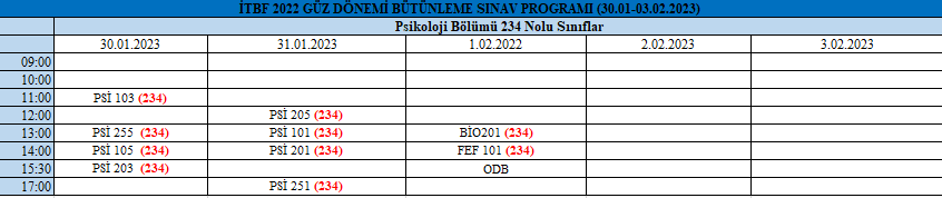 The make-up exam schedule for the Fall Semester 2022-2023 is provided below. This is for the information of all students.