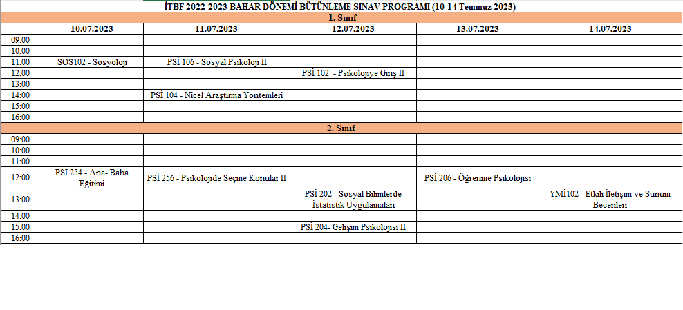 The make-up exam schedule for the Spring Semester 2022-2023 is provided below. This is for the information of all students.