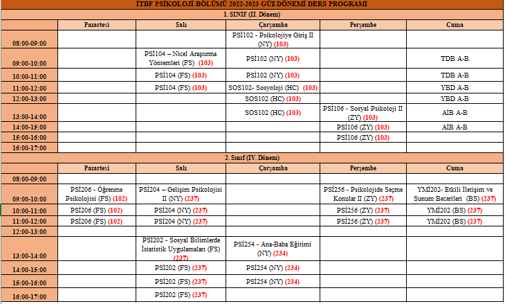 The course schedule for the Spring Semester 2022-2023 is provided below. This is for the information of all students.