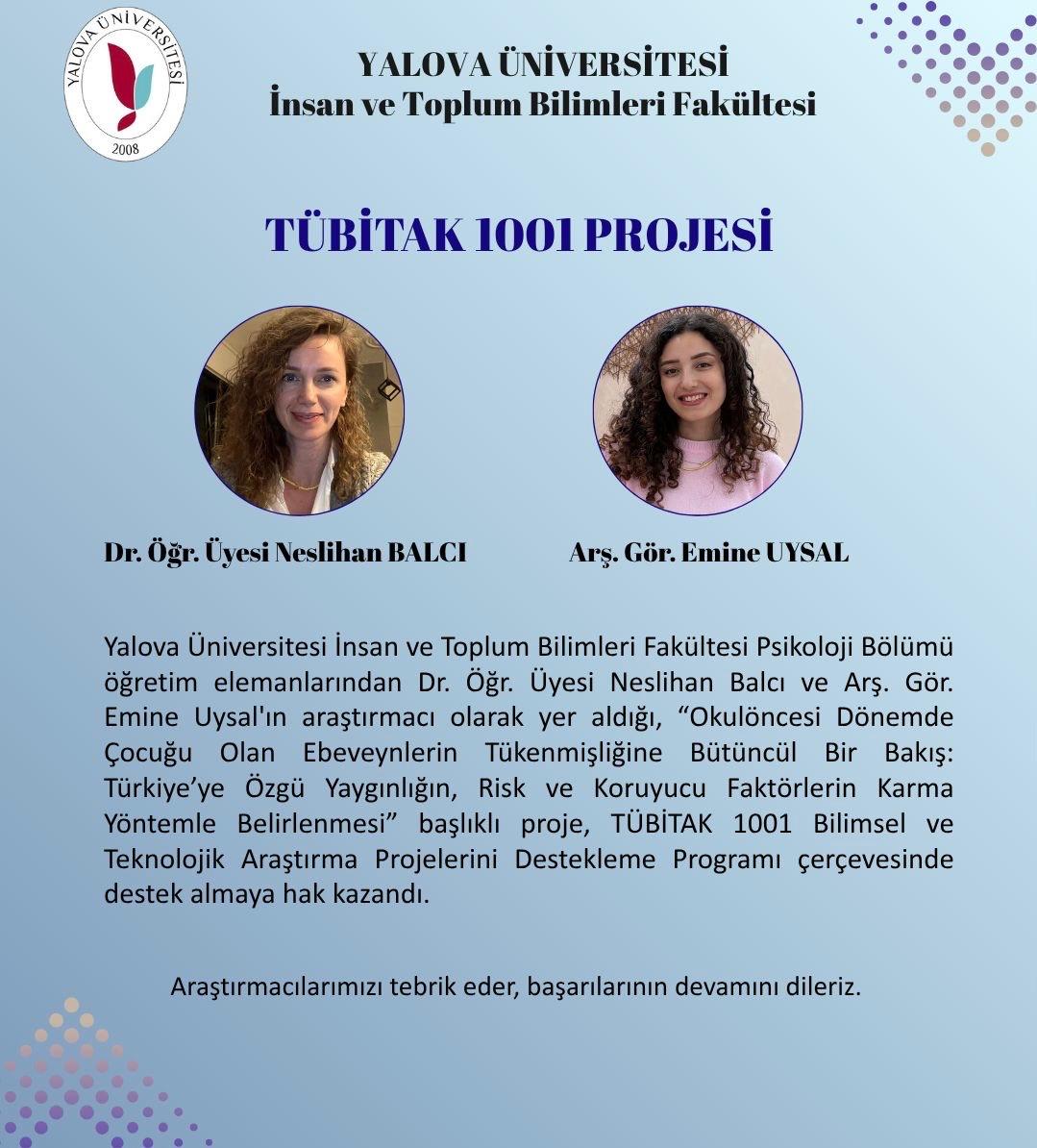 The scientific research project titled “A Holistic View on Parental Burnout in Parents of Preschool-Aged Children: Determining Prevalence, Risk, and Protective Factors Specific to Turkey Using a Mixed-Methods Approach,” involving our Psychology Department faculty members Asst. Prof. Neslihan Balcı and Res. Asst. Emine Uysal as researchers, has been accepted for support in the first term of 2025 under the TÜBİTAK 1001 Scientific and Technological Research Projects Support Program.