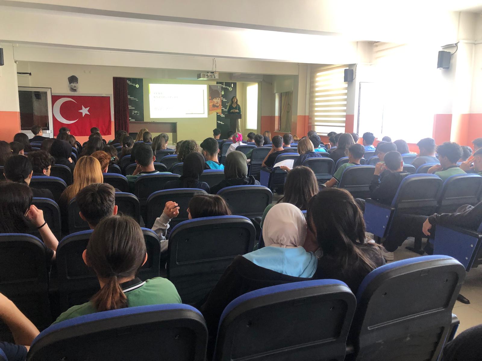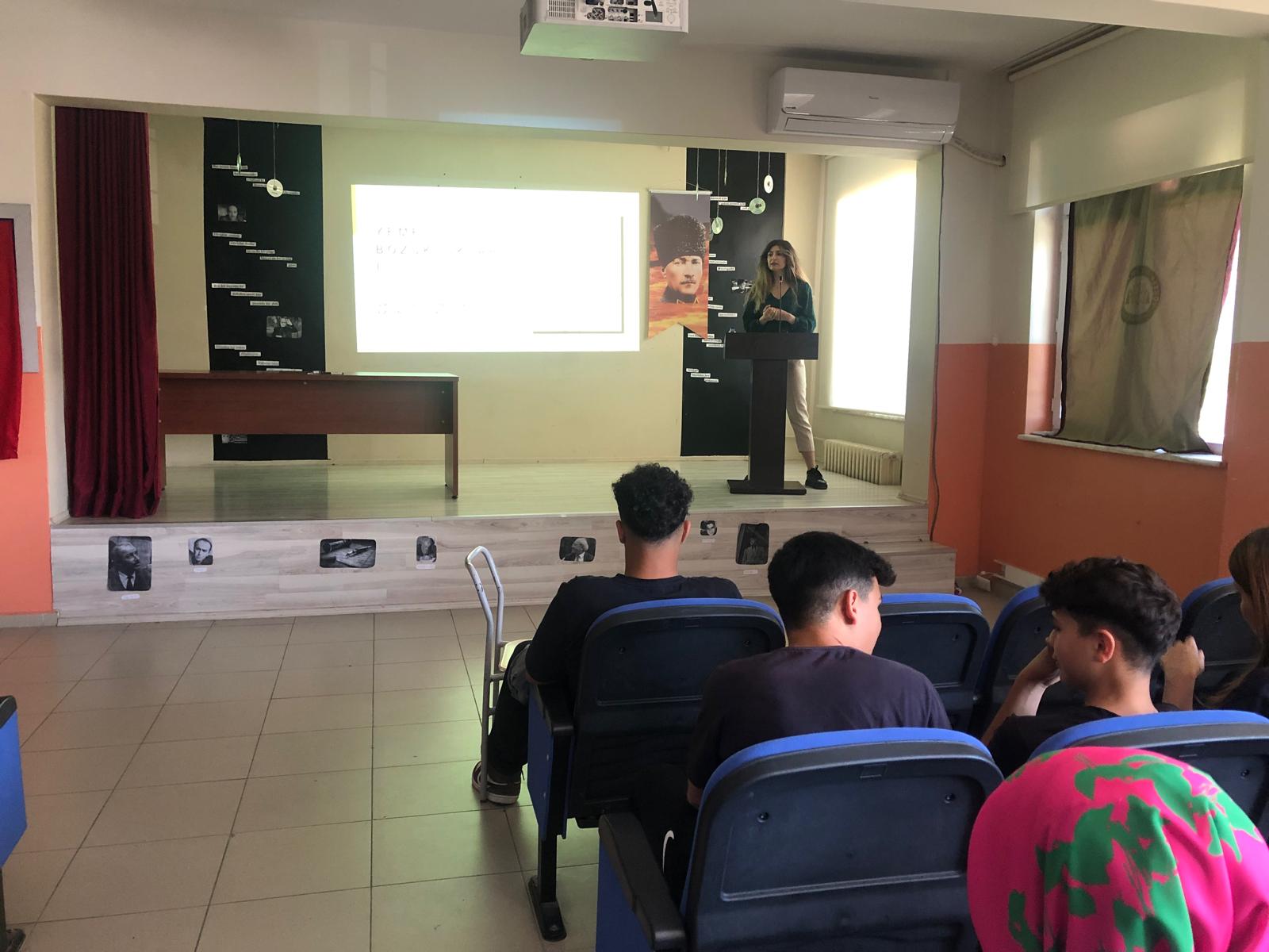 Our department’s Research Assistant Ezginur Çelik conducted a seminar on 30.05.2024 for students of Çiftlikköy Mustafa Kemal Anatolian High School. The seminar covered eating disorders, their origins, prevalence, risk factors, and the individuals/institutions students can turn to for help with eating disorders.